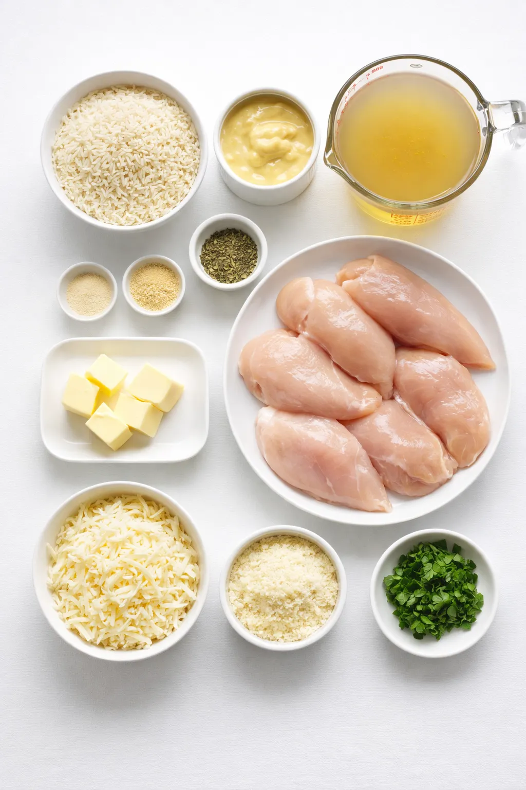 Chicken Breasts: The base protein, juicy and tender once baked into the creamy rice.