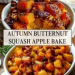Sweet roasted apples, golden squash, and cozy spices come together in this Autumn Butternut Squash Apple Bake. The texture is melt-in-your-mouth soft with occasional chew from dried cranberries, and a buttery glaze pulls every bite into warm comfort. It smells like pie but eats like a wholesome side dish.
