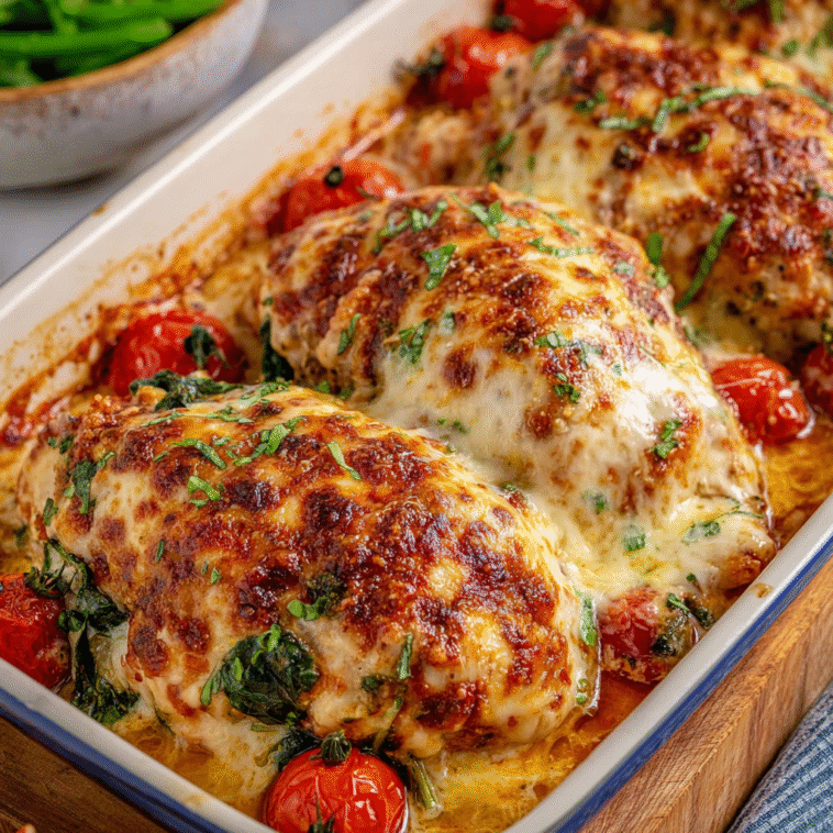 8. Bake for 25–30 minutes, until chicken is cooked through (internal temp 165°F) and cheese is golden and bubbly.