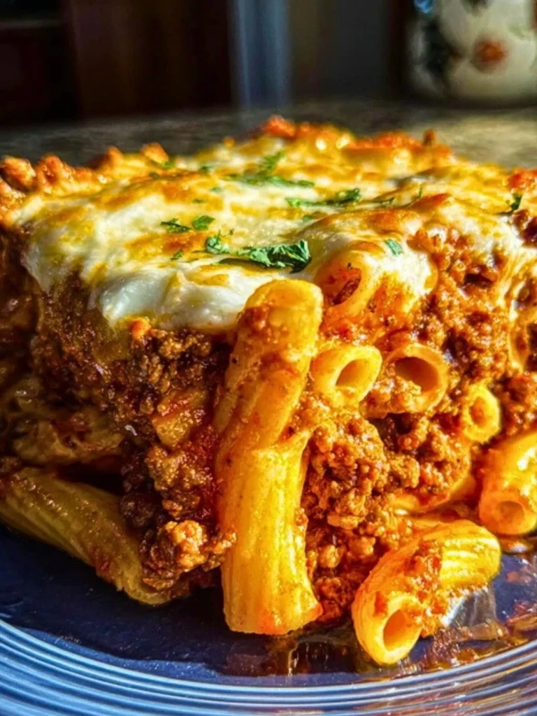 What sets this version apart is how the meat sauce simmers down until it clings to every tube of pasta. I cook it longer than most recipes—until the beef and tomato become almost one. Add in a generous layer of melty mozzarella and a touch of ricotta, and it turns into a pasta bake that holds its shape and melts in your mouth.