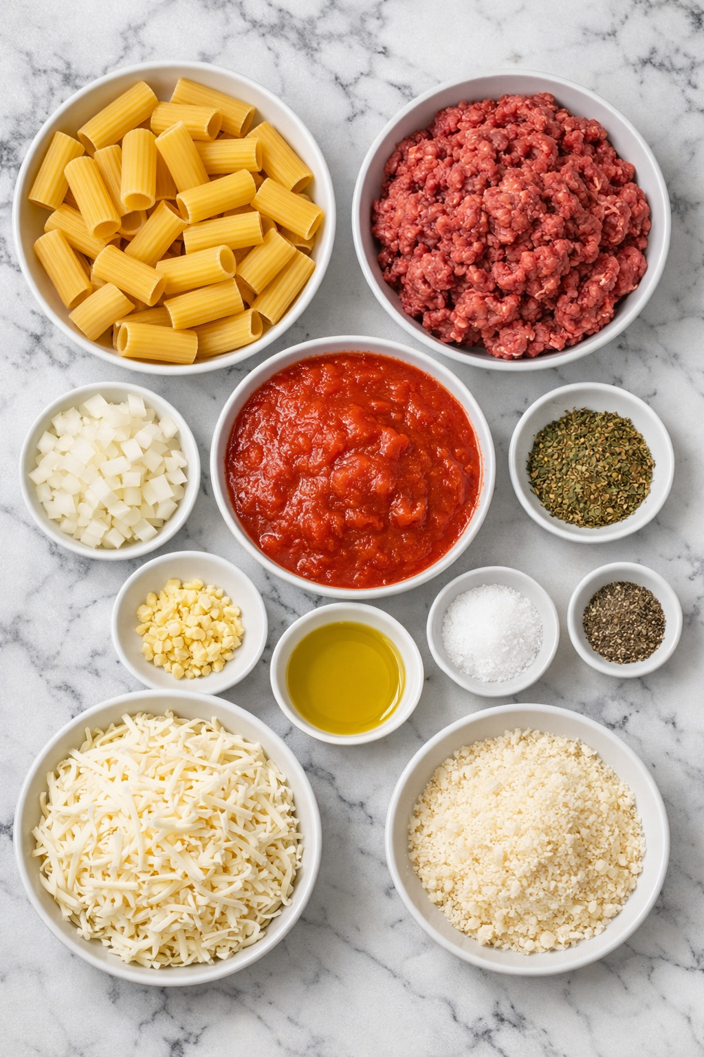 The Ingredients That Make This Beef Rigatoni Cheese Bake Work