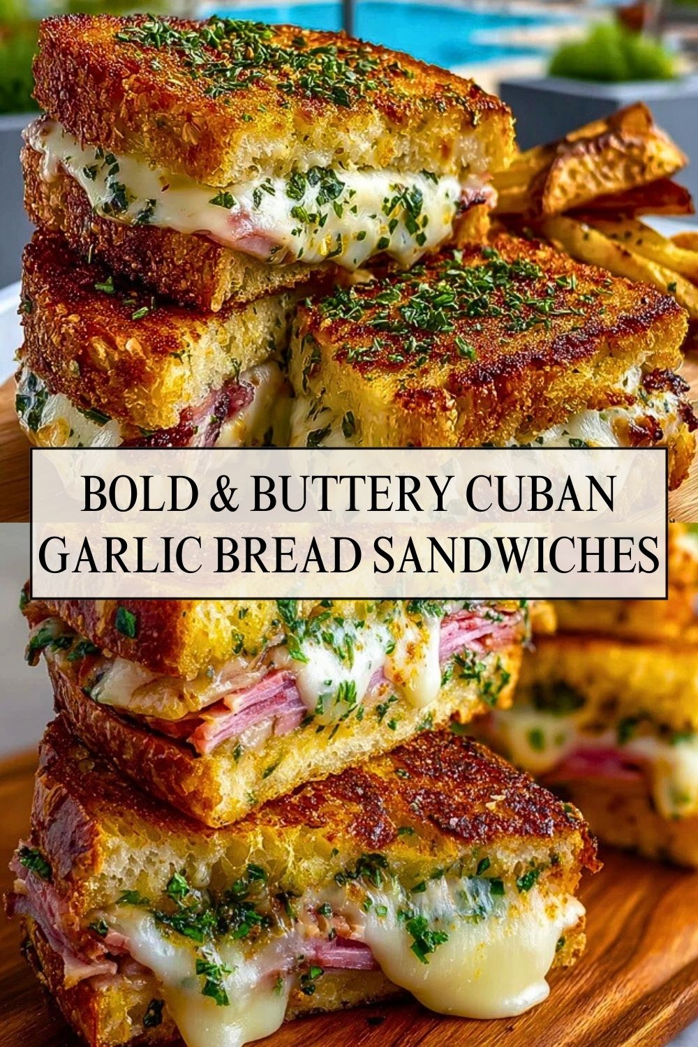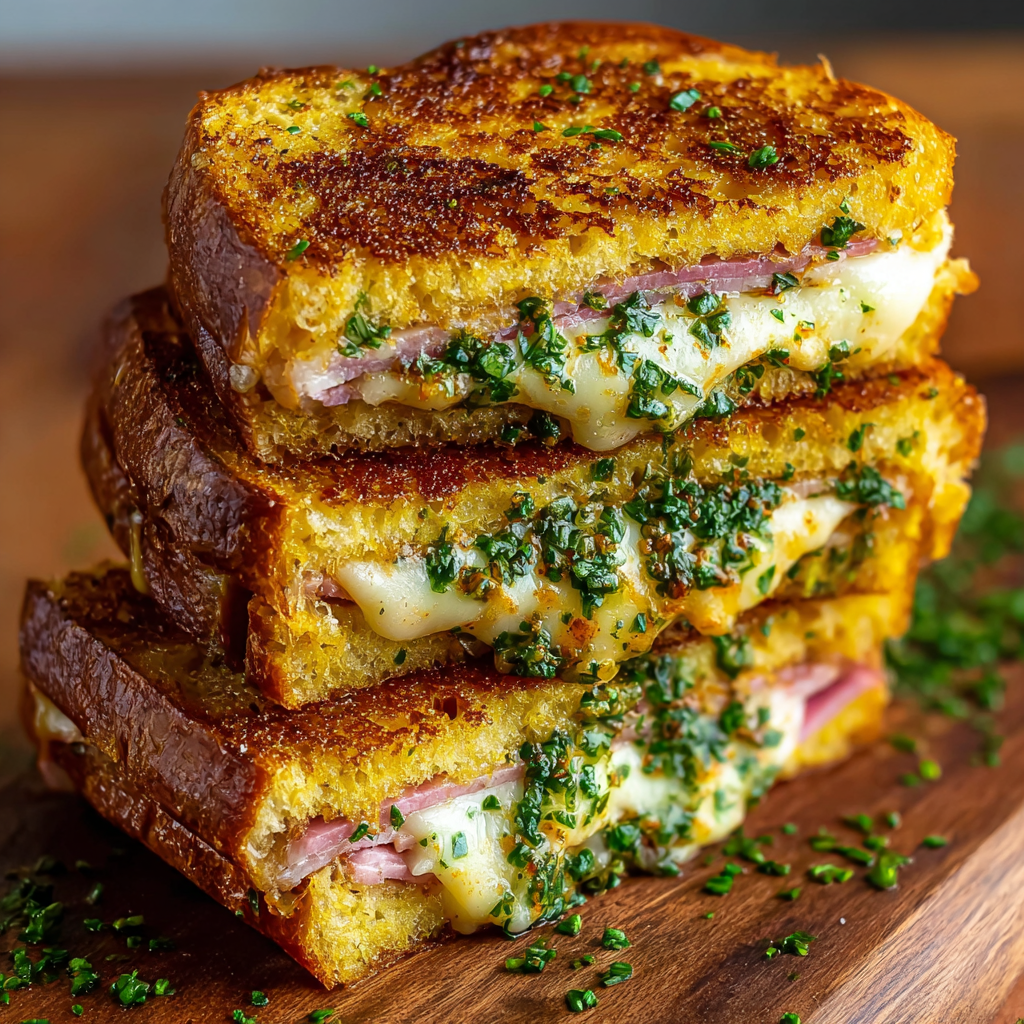 Golden, crispy, garlicky, and stuffed with melty cheese and savory ham, these Bold & Buttery Cuban Garlic Bread Sandwiches are the definition of crave-worthy. Imagine everything you love about a Cuban sandwich, now with a garlic bread upgrade. That irresistible crunch from buttery seared bread, the fragrant burst of fresh herbs, and the gooey stretch of cheese — all wrapped around juicy slices of ham. This is sandwich royalty, no questions asked.