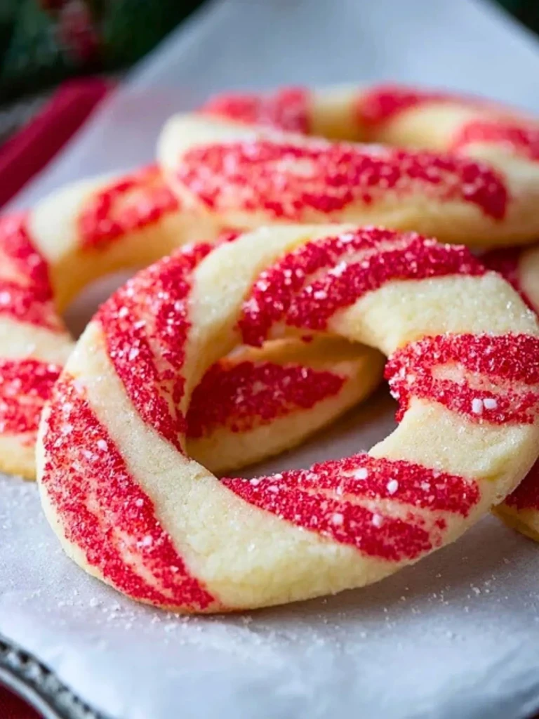These Candy Cane Cookies combine melt-in-your-mouth buttery shortbread with a hint of peppermint, all wrapped in a swirled red-and-white ring that looks just as festive as it tastes. They’re tender, slightly crumbly, and have just enough sweetness to pair perfectly with a mug of hot cocoa or eggnog.
