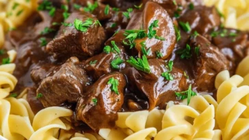Easy Crockpot Beef Tips & Noodles