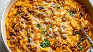 Ground Beef Orzo with Tomato Cream Sauce