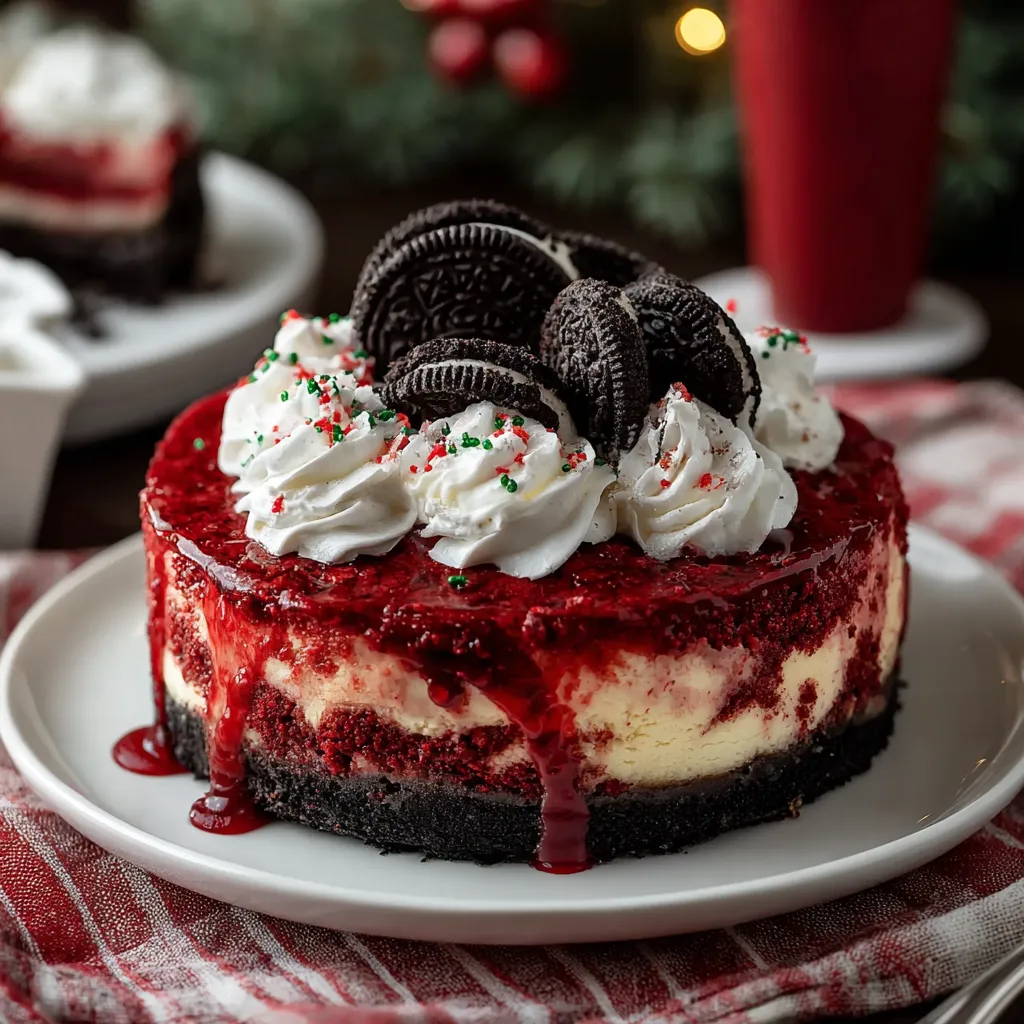 Keywords: Christmas cheesecake, red velvet cheesecake, Oreo crust cheesecake