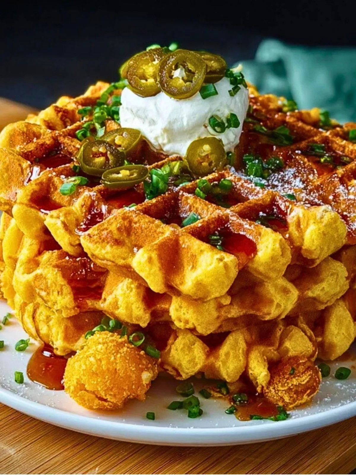 Golden, crisp edges with a tender, fluffy inside—that’s the magic of a cornbread waffle. It blends the richness of Southern-style cornbread with the crisp structure of a Belgian waffle. A bite starts crunchy, turns pillowy, and finishes with a kiss of sweet heat when topped with jalapeño slices and maple syrup.