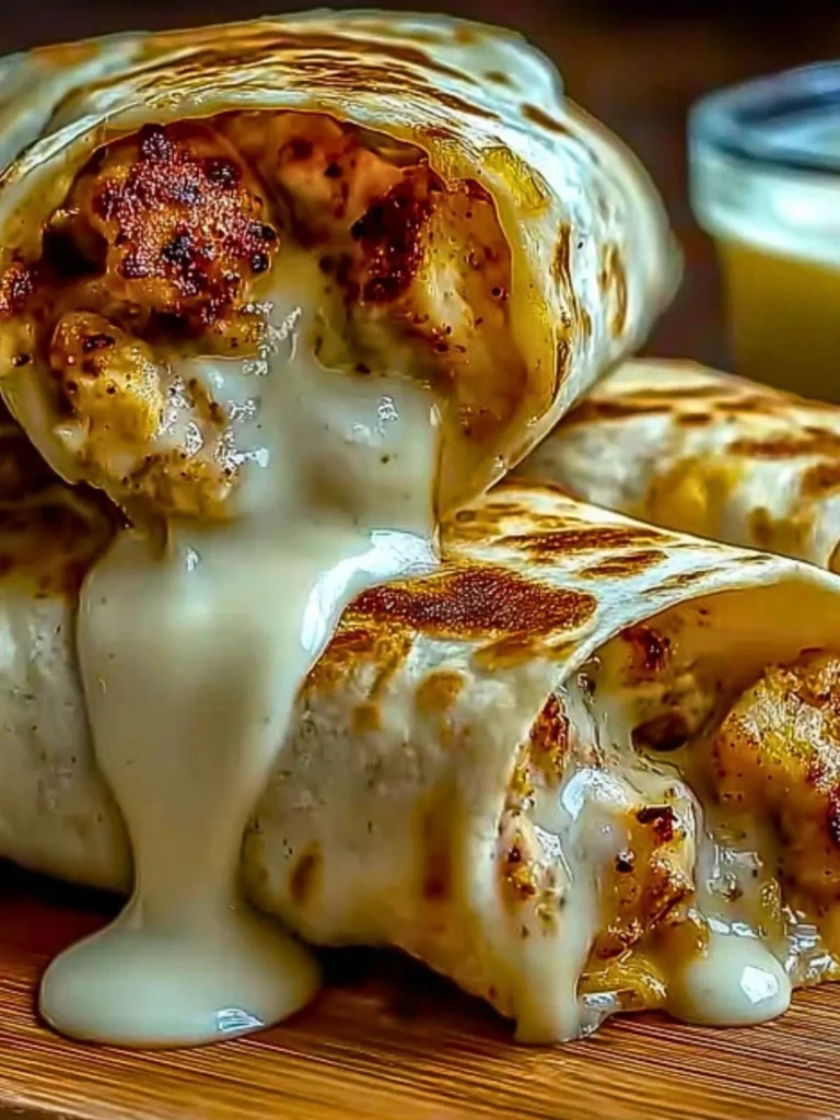 Golden-seared chicken, smoky seasoning, and a rich, velvety homemade garlic cheese sauce all wrapped in a crispy toasted tortilla. These wraps are gooey, comforting, and perfect for quick weeknight dinners or cozy weekends.