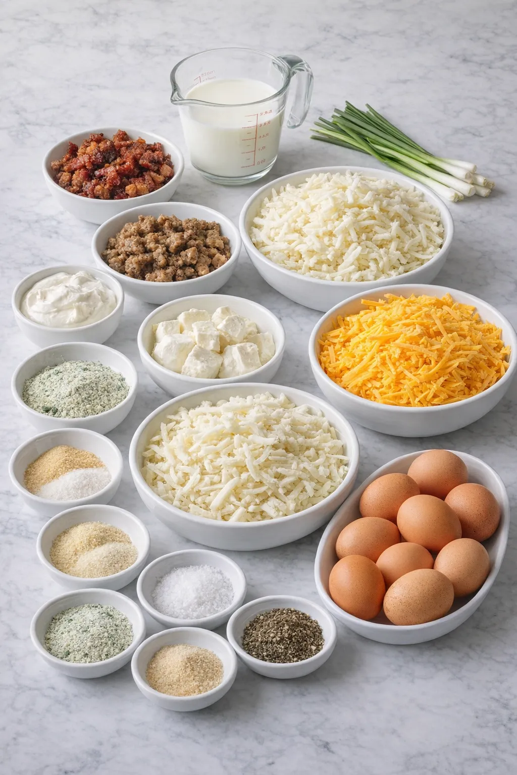 - Eggs – The backbone of the casserole, baking into a soft, custardy base that holds everything together.