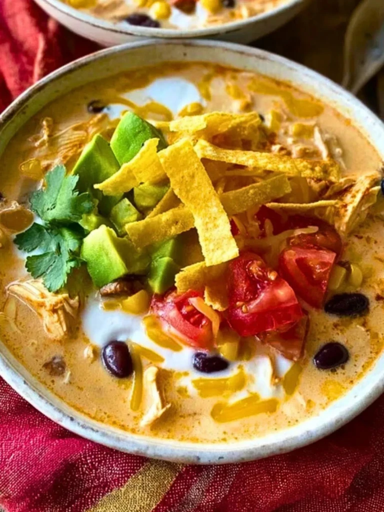 A velvety, flavor-packed taco soup made with tender shredded chicken, black beans, corn, tomatoes, and just the right amount of cream cheese. A perfect one-pot weeknight dinner with a cozy Tex-Mex twist.