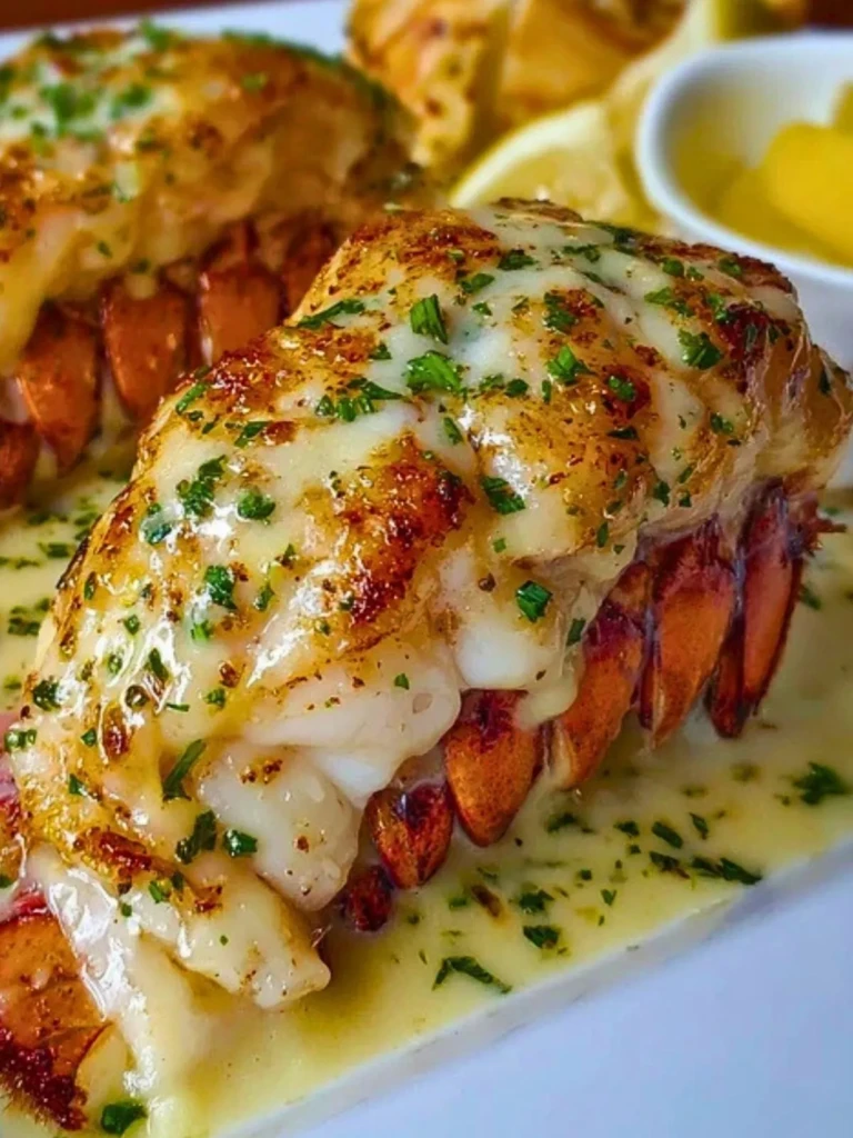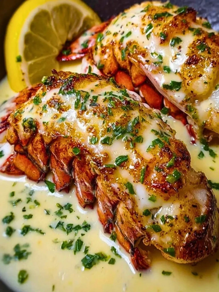 Keywords: lobster tails, creamy garlic butter, seafood dinner, special occasion meal, broiled lobster