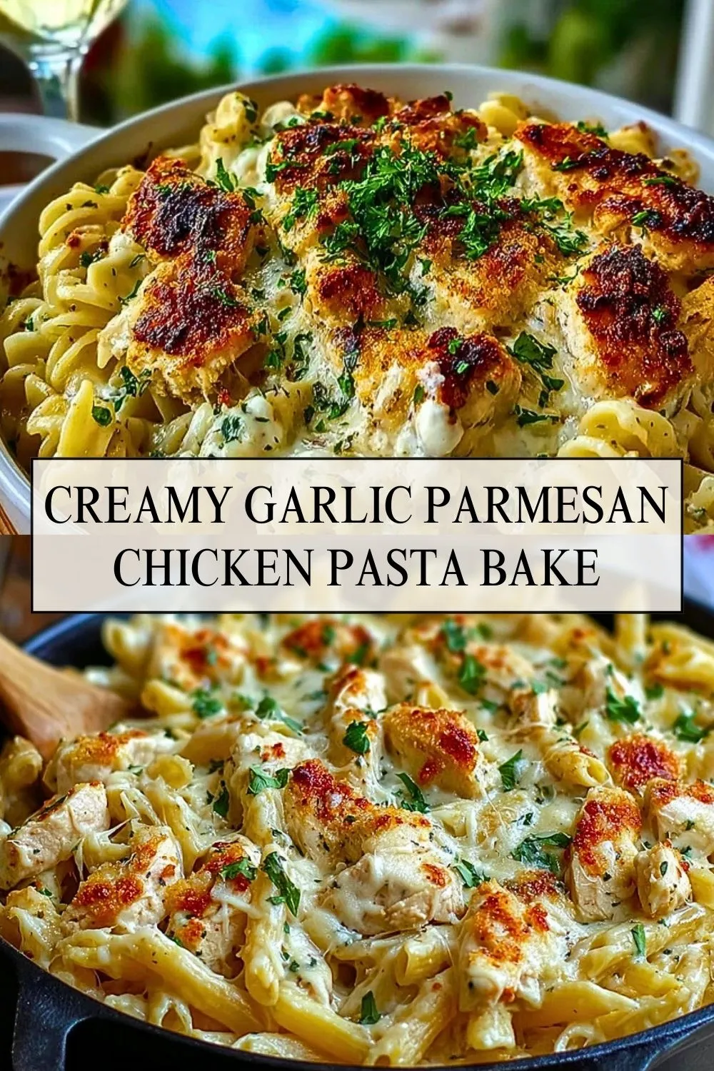 Creamy Garlic Parmesan Chicken Pasta Bake