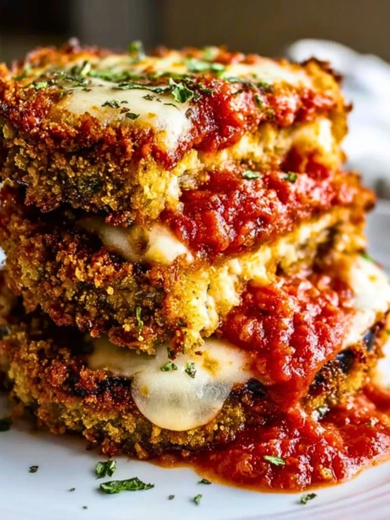 The real hero is the triple-layer approach: crisp-coated eggplant slices, tangy marinara, and a blend of cheeses that melt into stringy, bubbling magic. And no shortcuts here—every layer matters.