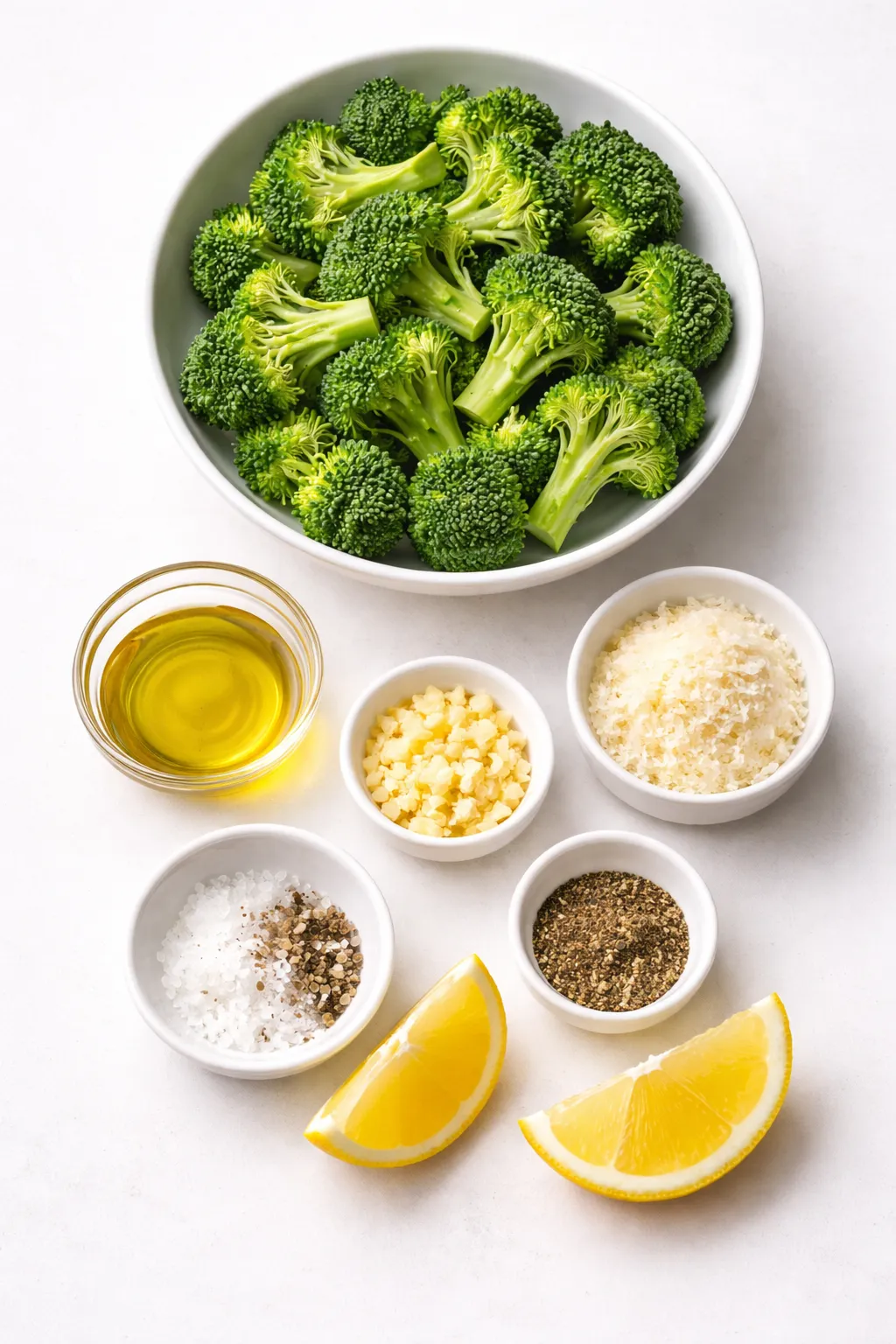 2. In a large bowl, combine the broccoli with olive oil, minced garlic, salt, and black pepper. Toss until everything is well coated.