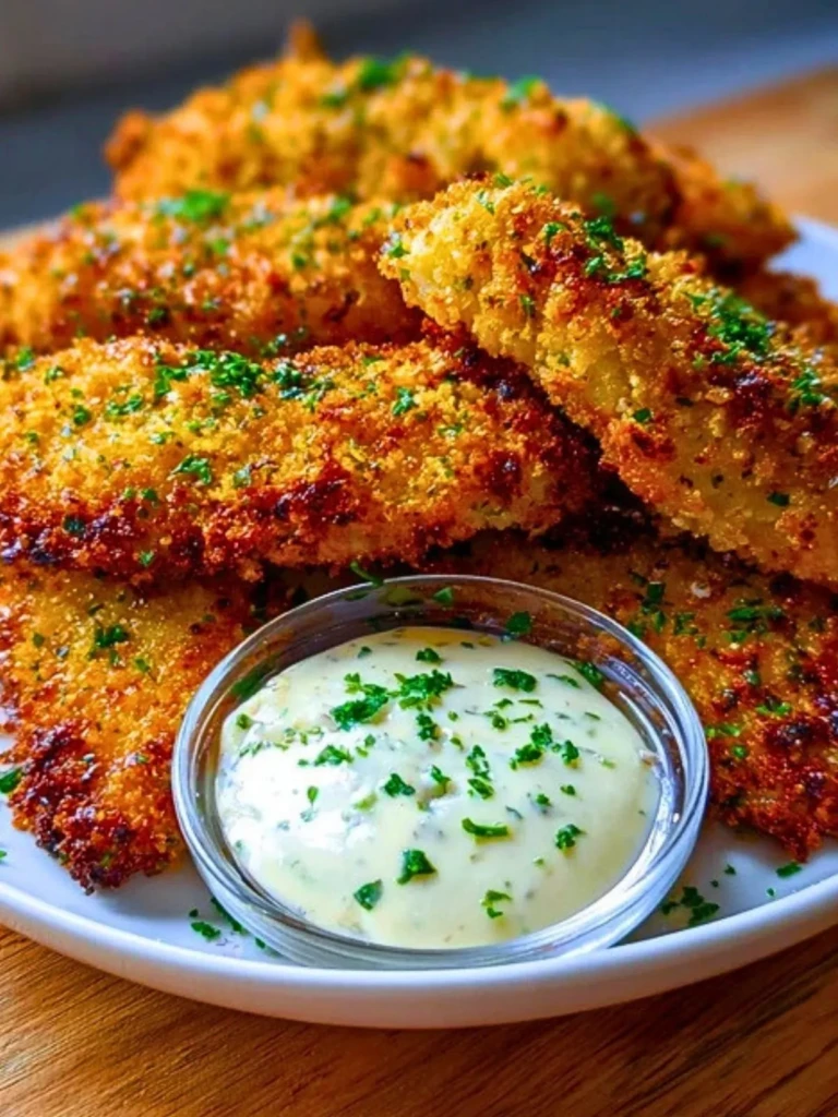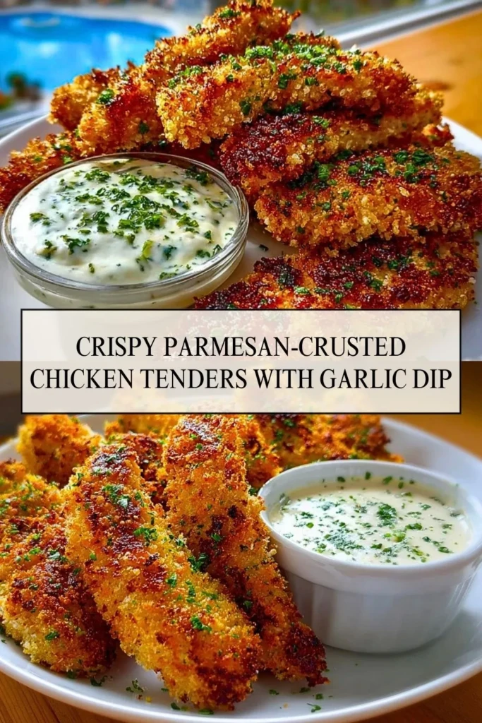 Crispy Parmesan-Crusted Chicken Tenders with Garlic Dip