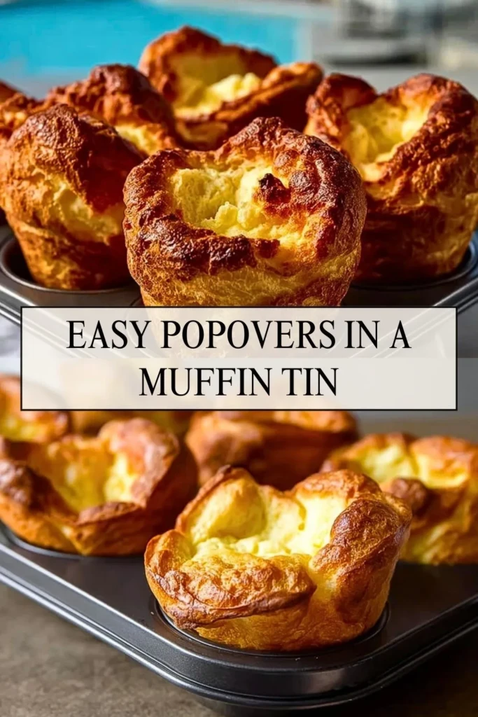This image captures the golden, airy beauty of these popovers fresh from the oven. Use it in your Pinterest pins, recipe cards, or blog posts to showcase just how tall and crisp these bake up—even without a special popover pan.