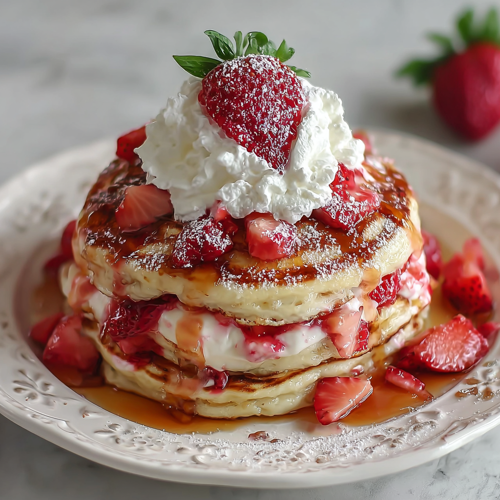 Keywords: fluffy pancakes, strawberry cheesecake, breakfast ideas, brunch recipes, easy breakfast