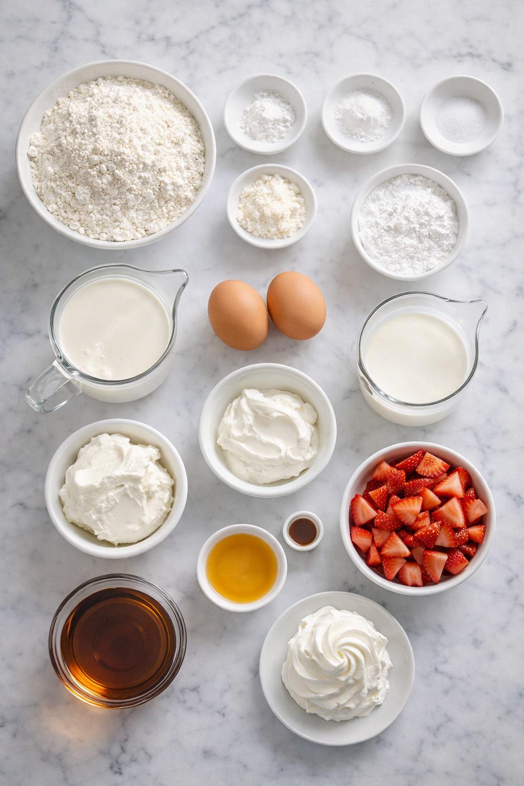 Ingredients for the Fluffy Strawberry Cheesecake Pancakes