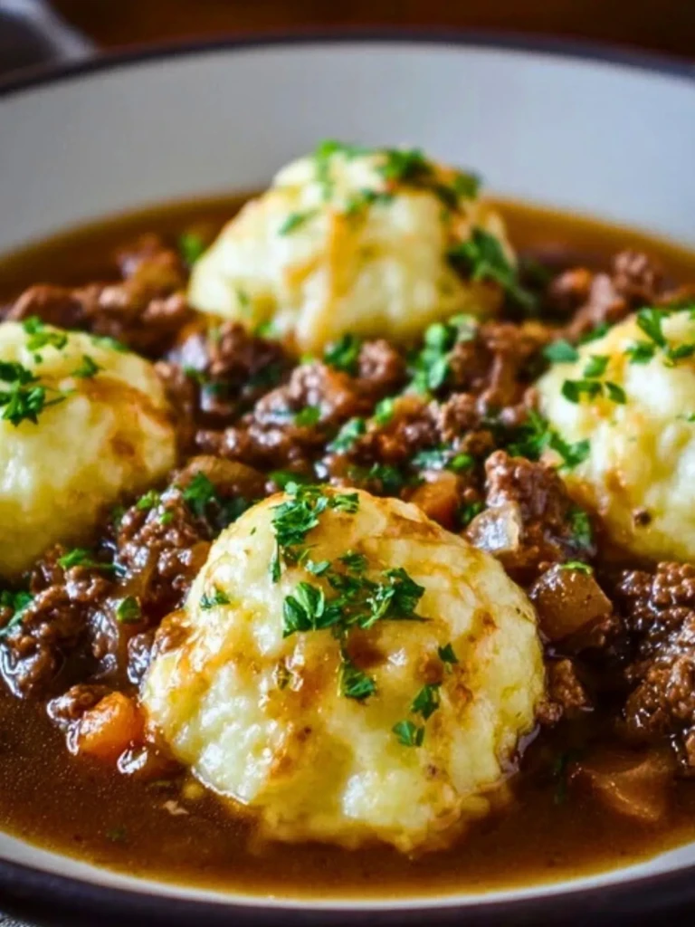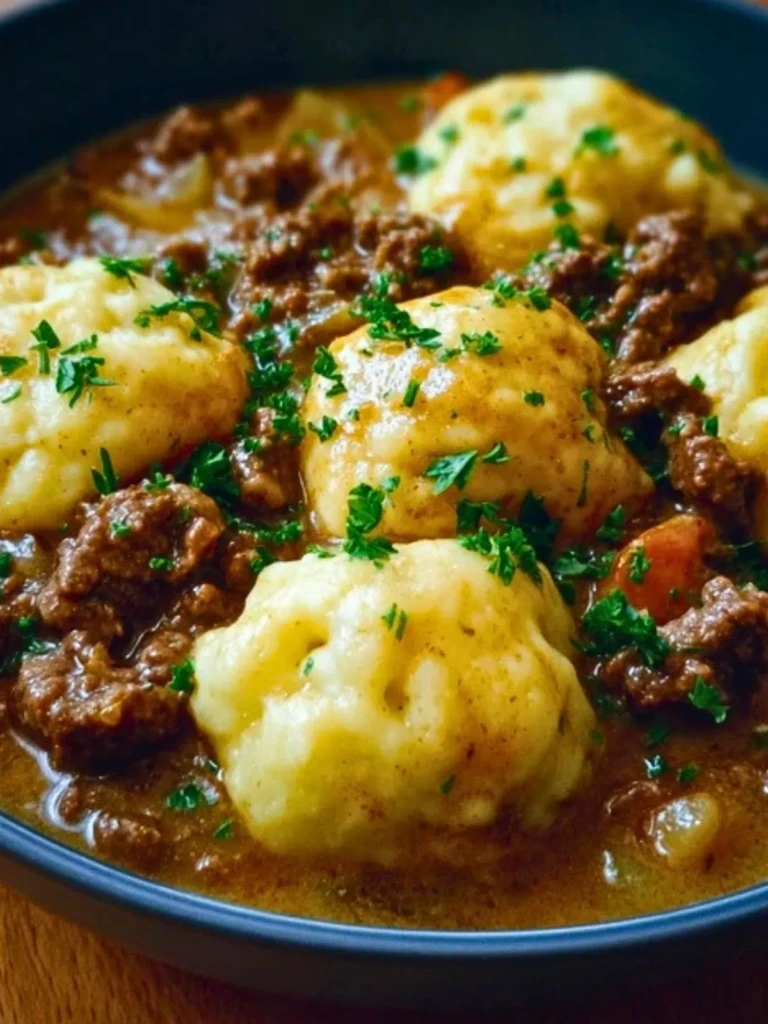 Savory, rich, and comforting, this ground beef and dumplings dish features a deeply flavorful beef gravy base topped with pillowy buttermilk dumplings that steam to tender perfection. Ideal for cold nights, this one-pot meal tastes like it took all day—but comes together in under an hour.