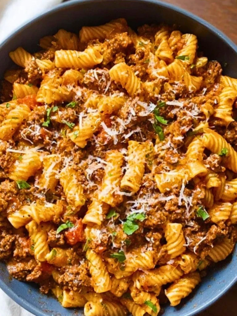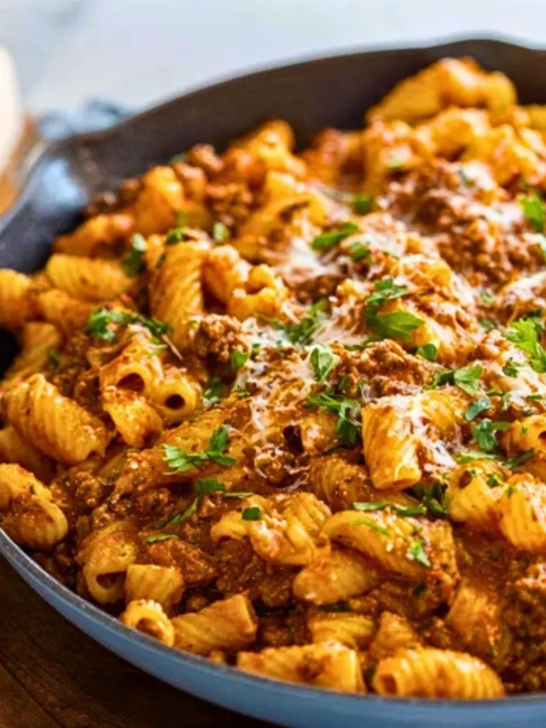 It was my brother Ben who first made me fall in love with ground beef pasta. We were in our early twenties, sharing a tiny apartment where the kitchen barely fit two people side by side. It was a Tuesday night, and I came home to find him at the stove, apron smudged with sauce, stirring a pan with the kind of focus only hunger could inspire. He looked up, grinned, and said, “You’re just in time.”