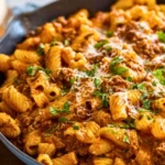 Ground Beef Pasta is a creamy, savory one-pot meal with tender rigatoni coated in a rich tomato-cream sauce, nestled with seasoned ground beef and topped with parmesan and fresh parsley. I love making it with onion, garlic, crushed tomatoes, and a touch of cream—it’s a simple recipe that brings big comfort with minimal effort. Known by some as creamy beef rigatoni or skillet meat sauce pasta, this dish is perfect for weeknights. I’ve tested versions with mascarpone and heavy cream, and both work beautifully for different moods. Among beef pasta recipes, Ground Beef Pasta stands out for its nostalgic flavor, hearty texture, and ease of cleanup. It’s a must-keep meal for any family dinner rotation.