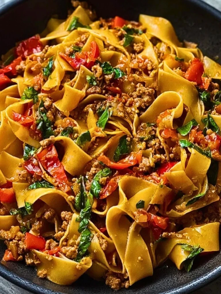 There’s something wonderfully indulgent about wide ribbons of pappardelle tangled up with crumbled Italian sausage and softened bell peppers. Italian Drunken Noodles are that perfect comfort dish that brings together a slightly spicy tomato sauce, silky noodles, and a rich, aromatic base of garlic, onions, and herbs. The heat builds slowly, balanced by the sweetness of the tomatoes and the savoriness of the sausage.