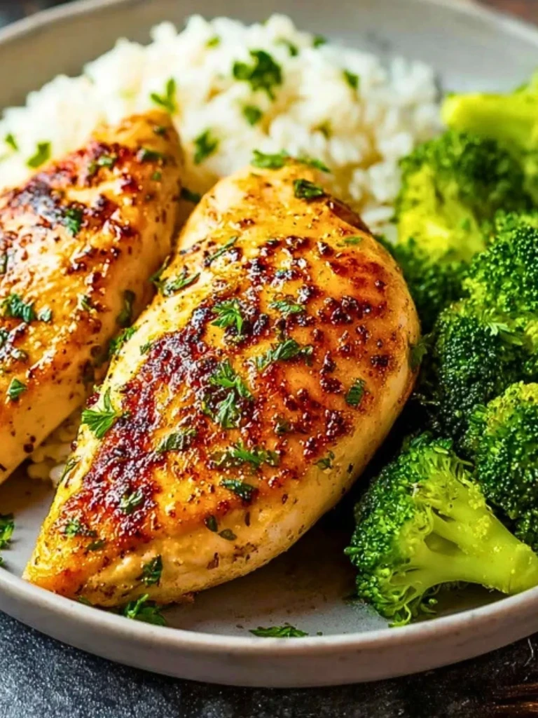 Juicy, tender, and packed with herbed garlic flavor, this baked chicken breast is finished with a golden broil and perfect for weeknight dinners or meal prep.
