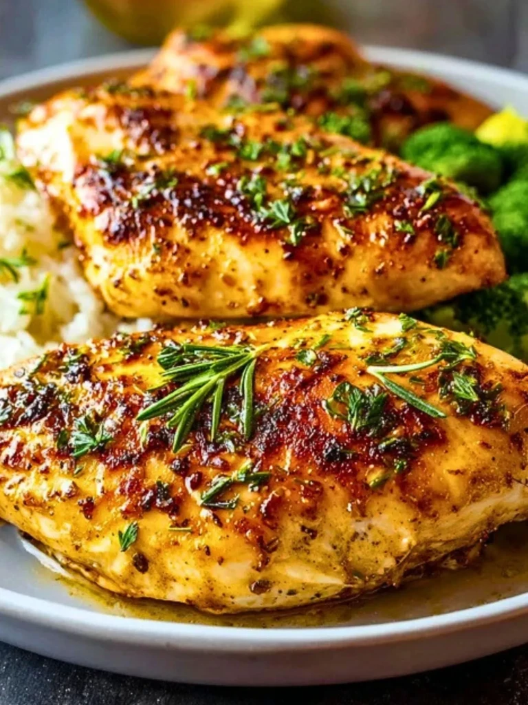 I usually serve this chicken with a scoop of fluffy jasmine rice and steamed broccoli tossed with lemon zest. It makes the plate feel balanced—a little earthy, a little bright, and completely satisfying. Sometimes I drizzle a little garlic butter over the top if I want to turn it into more of a comfort meal.