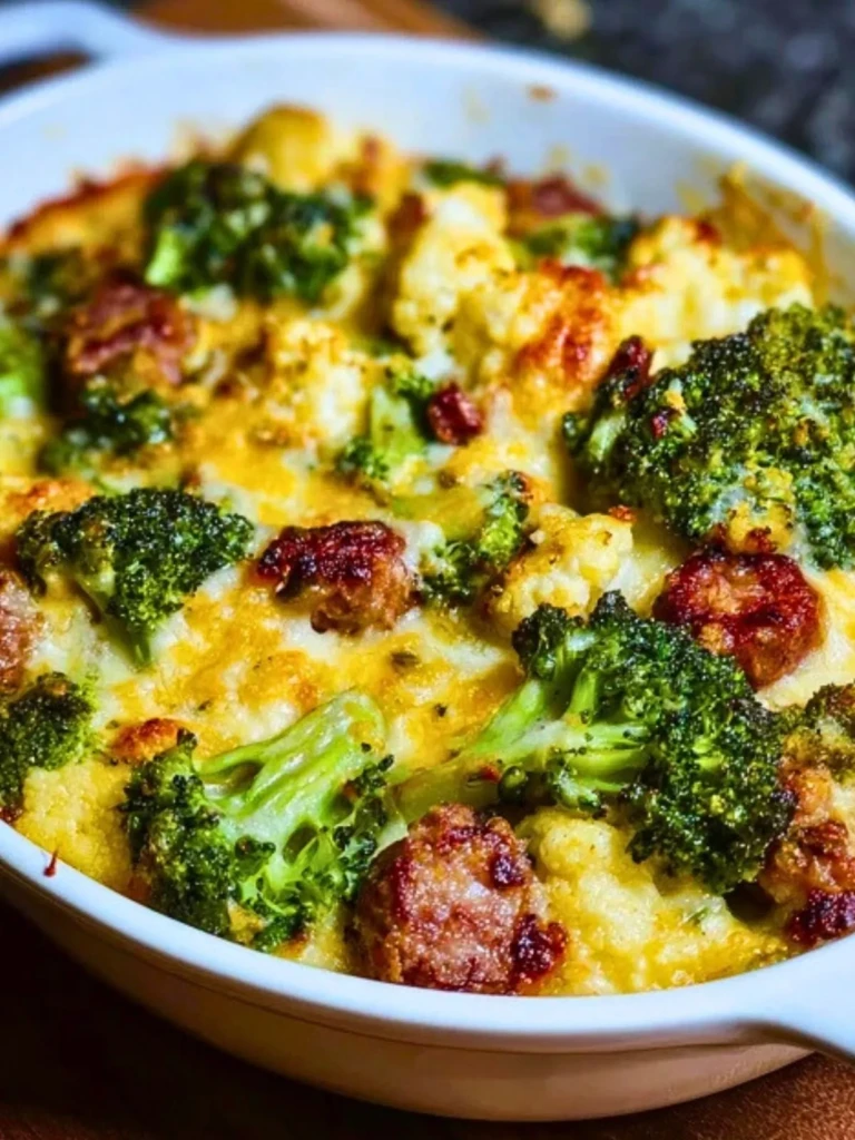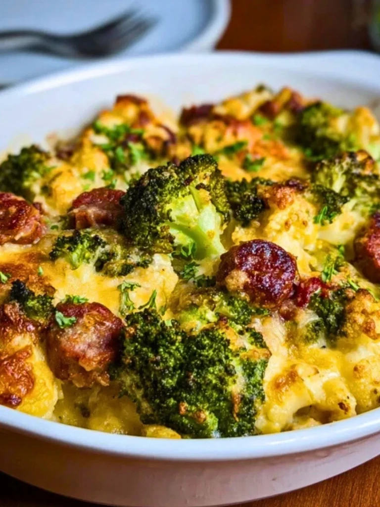 What makes it work is balance. The broccoli and cauliflower aren’t just filler; they take on a roasted, nutty character that pairs beautifully with the sharpness of cheddar. And the sausage? It’s not just there for protein. It crisps at the edges and infuses the whole dish with flavor.