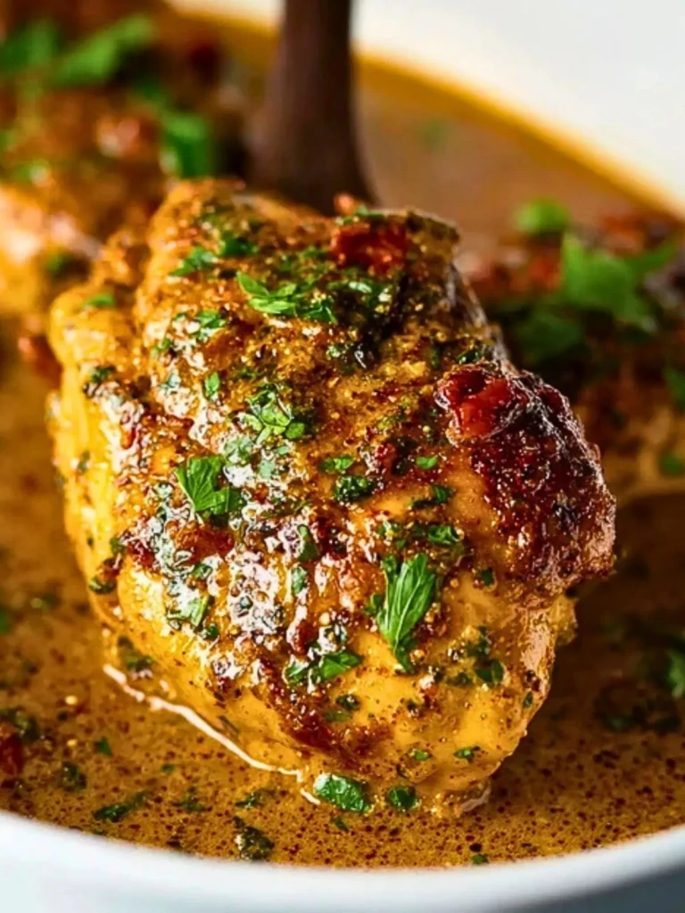 What really sets this dish apart isn’t just the dreamy sauce—it’s the way the chicken is cooked just right before it’s bathed in flavor. That first bite delivers juicy chicken wrapped in silky cream, with thyme and rosemary drifting through the aroma like you’re cooking straight from a rustic Tuscan kitchen.