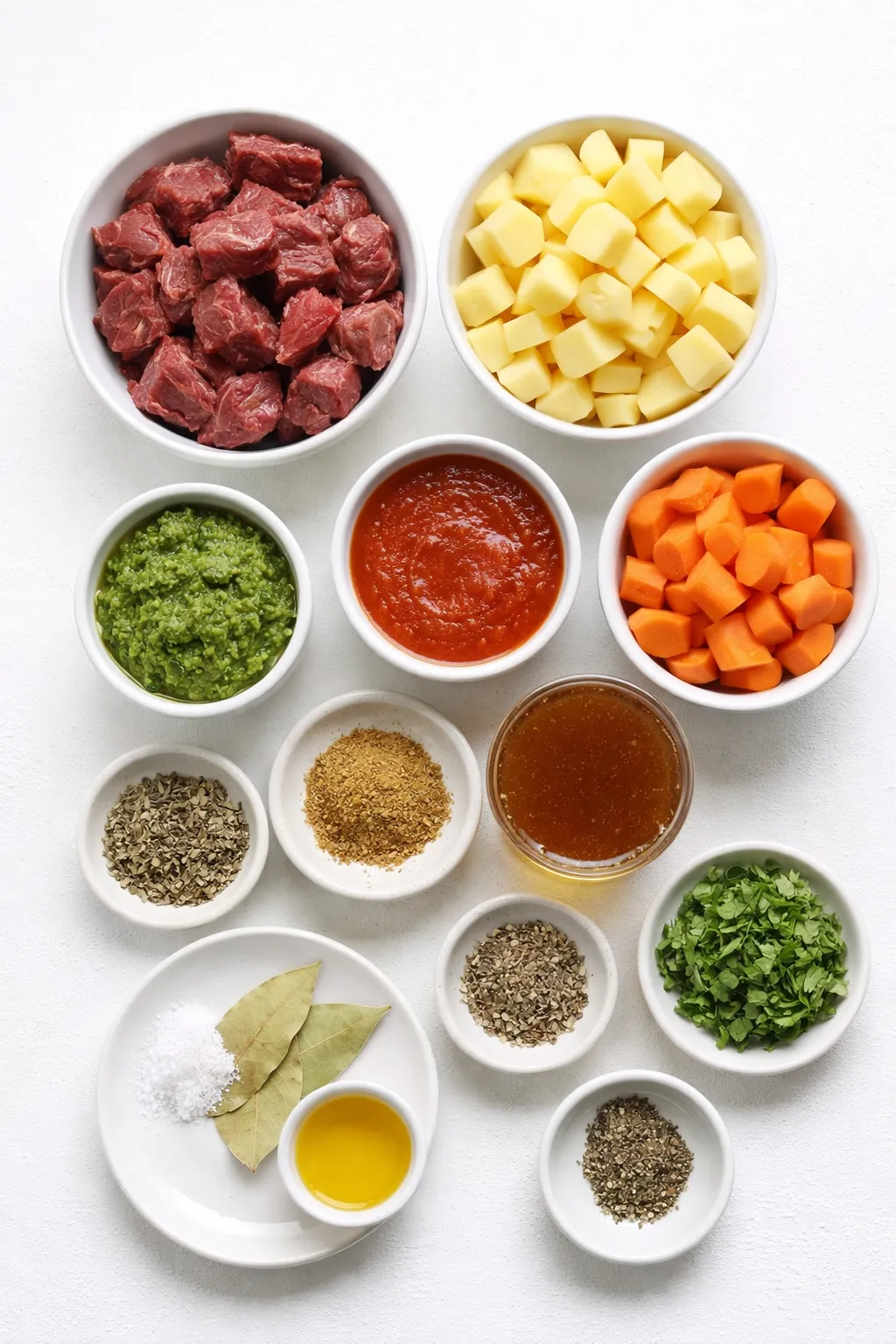 Chuck roast or stew beef is ideal for this recipe. These cuts become tender over time and absorb the intense flavor of the stew base. The marbling ensures your meat stays juicy, not dry, after simmering.