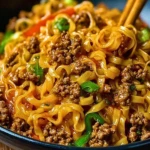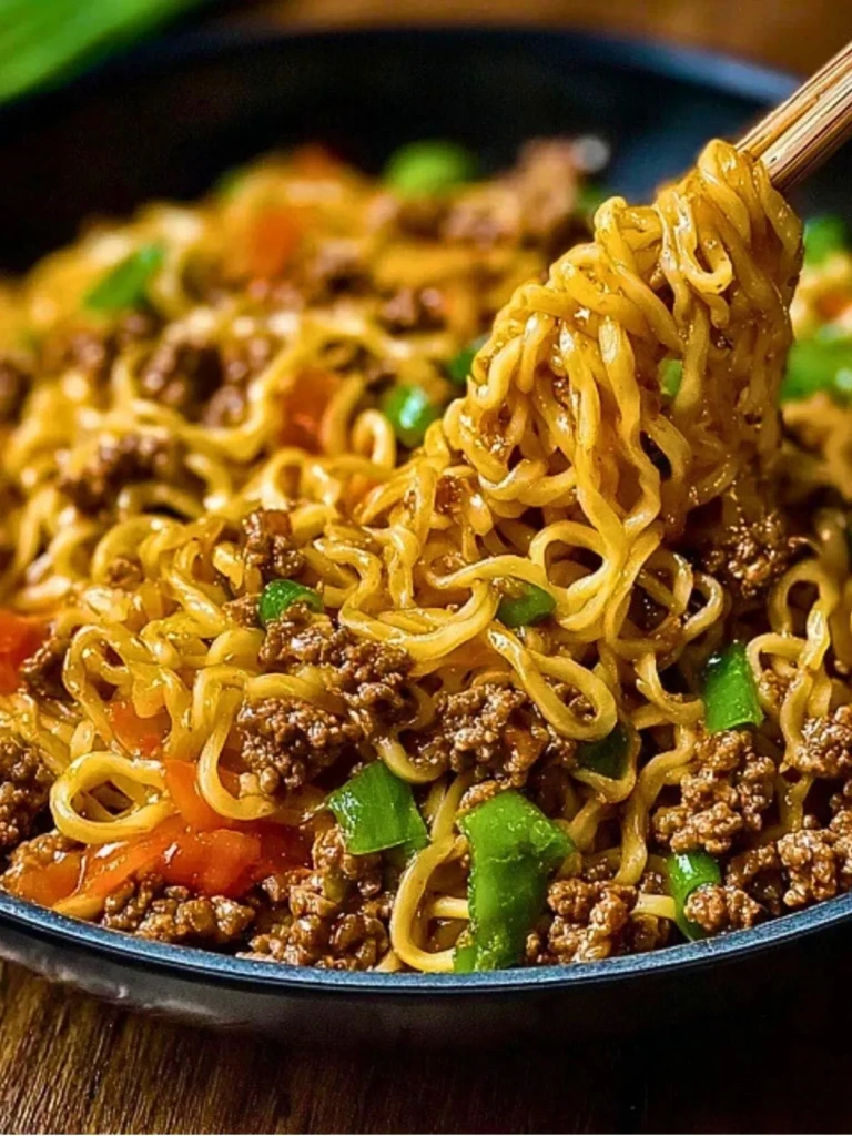This dish brings together glossy noodles, tender ground beef, and crisp veggies in a thick, sticky Mongolian-style sauce that clings to every strand. It’s the kind of weeknight comfort food that satisfies both cravings and time constraints.