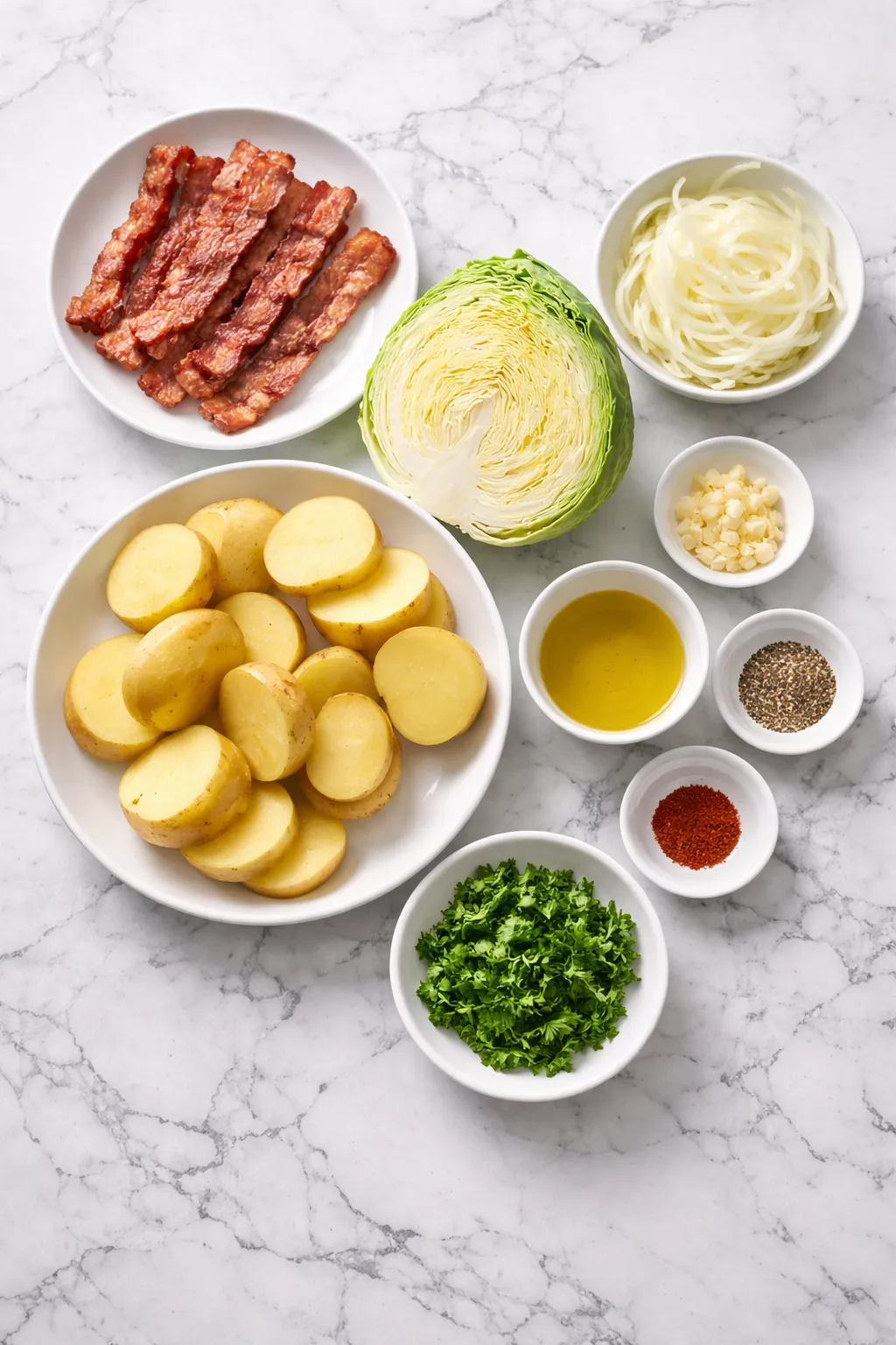 Ingredients for the Nostalgic Fried Cabbage and Potatoes