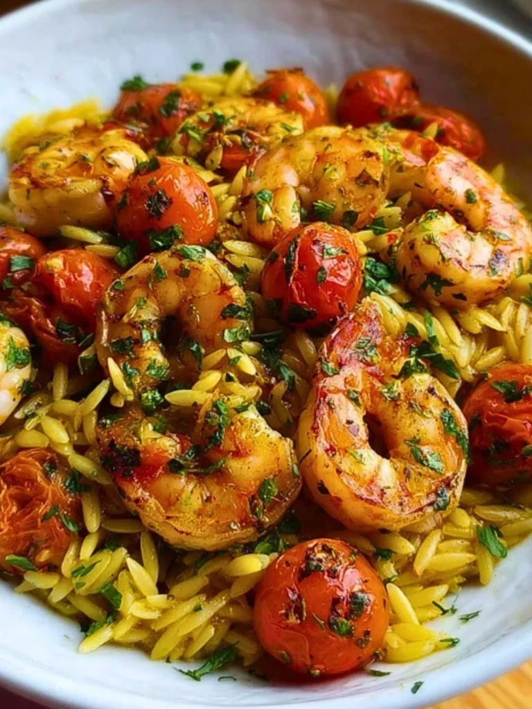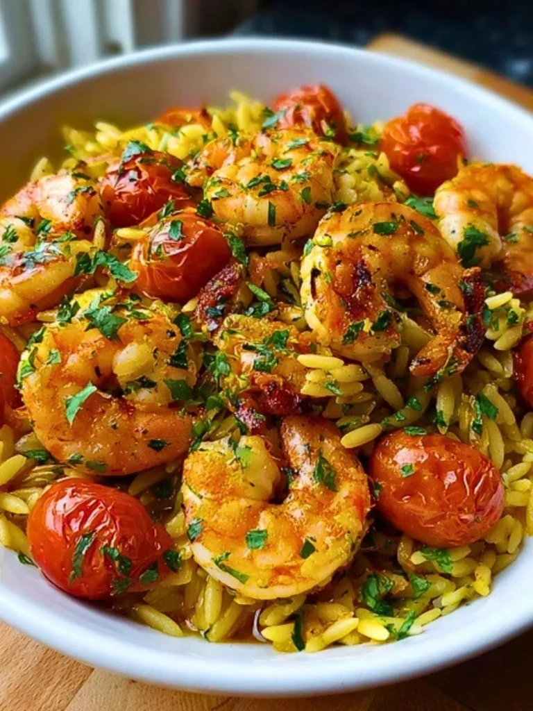 This dish brings together juicy shrimp, golden orzo pasta, and blistered cherry tomatoes in a garlicky, buttery sauce that clings to every bite. It’s savory and rich with a touch of spice, yet fresh from a final shower of herbs.