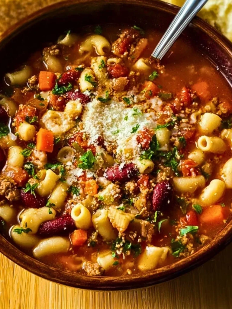 A cozy, flavor-packed Italian soup made with tender pasta, hearty beans, ground beef, and a tomato-rich broth. It’s the perfect answer to a chilly night, easy to prep, and wildly satisfying. This easy recipe is one of my favorite dinner ideas when I want something warm and filling, yet balanced with veggies. Perfect for meal prep, quick dinner, or a healthy snack-style soup portion.
