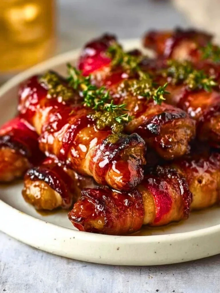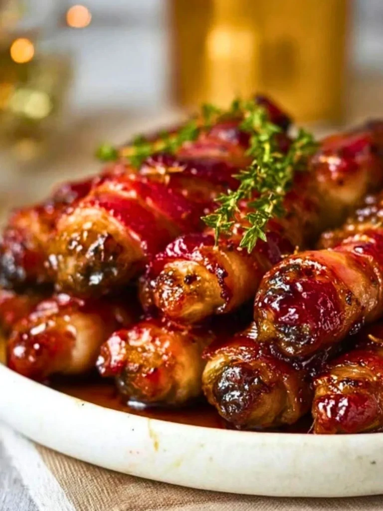 I’ve tried plenty of versions over the years, but brushing on that glaze halfway through baking makes all the difference. The bacon gets lacquered and crisp, while the glaze soaks into the sausages just enough. It’s my go-to party trick now, and it never fails.