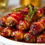 I’ve tried plenty of versions over the years, but brushing on that glaze halfway through baking makes all the difference. The bacon gets lacquered and crisp, while the glaze soaks into the sausages just enough. It’s my go-to party trick now, and it never fails.