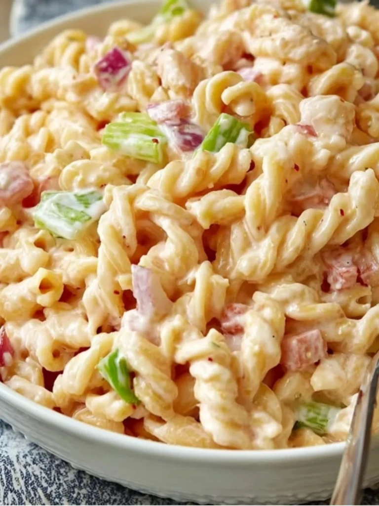 A creamy, tangy, and color-packed pasta salad that balances bold flavor, bright acidity, and crisp vegetables. Designed to stay fresh and vibrant whether served at picnics, potlucks, or weekday lunches.