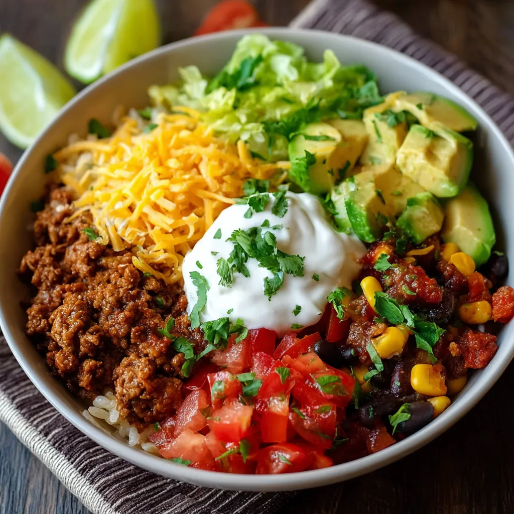 Keywords: quick dinner, taco bowl, easy recipe, meal prep, weeknight dinner
