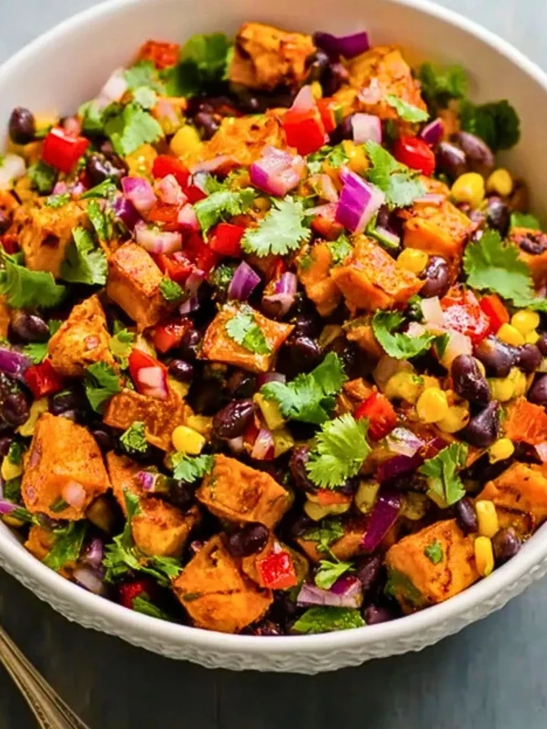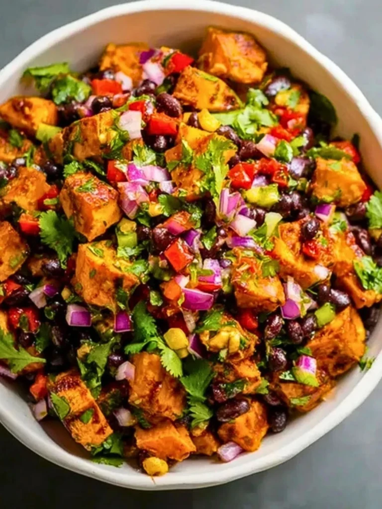 Roasted Sweet Potato Black Bean Salad is a vibrant, hearty dish filled with roasted, spiced sweet potatoes, black beans, crunchy vegetables, and a tangy cumin-lime dressing. I love making it with sweet potatoes, red onion, black beans, and corn—ingredients that make this salad both earthy and refreshing. It’s a simple recipe that’s naturally vegan and gluten-free, making it a great option for potlucks, meal prep, or weeknight dinners. You may also hear it called a southwest sweet potato salad or a sweet potato black bean bowl. I’ve tested this both as a chilled salad and warm dish—they both work beautifully. It stands out with its satisfying texture, bold flavor, and visual appeal. Start with roasted cubes of sweet potato, toss them with beans, corn, and red bell pepper, and dress with lime juice, cumin, and maple syrup. The combination is unexpected yet fitting, perfect for spring picnics or fall gatherings. Roasted Sweet Potato Black Bean Salad deserves a permanent spot in any whole foods recipe rotation.
