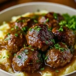 This version of Salisbury steak meatballs is designed to bring maximum comfort with minimal fuss. Whether you’re cooking for family on a busy weeknight or prepping a cozy weekend dinner, this dish promises a hearty, satisfying result without the traditional steak format. You’ll learn exactly how to balance tenderness and flavor in the meatballs, build a rich onion gravy from scratch, and serve it all over an irresistibly creamy base of mashed potatoes.
