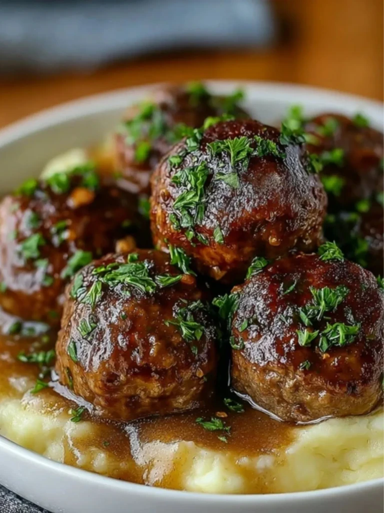 These Salisbury Steak Meatballs are a comforting twist on a classic American dish. Tender beef meatballs are seared and then simmered in a rich onion gravy and served over creamy mashed potatoes. Ideal for family dinners, make-ahead meals, or when you want homestyle flavor without the hassle of individual steaks.