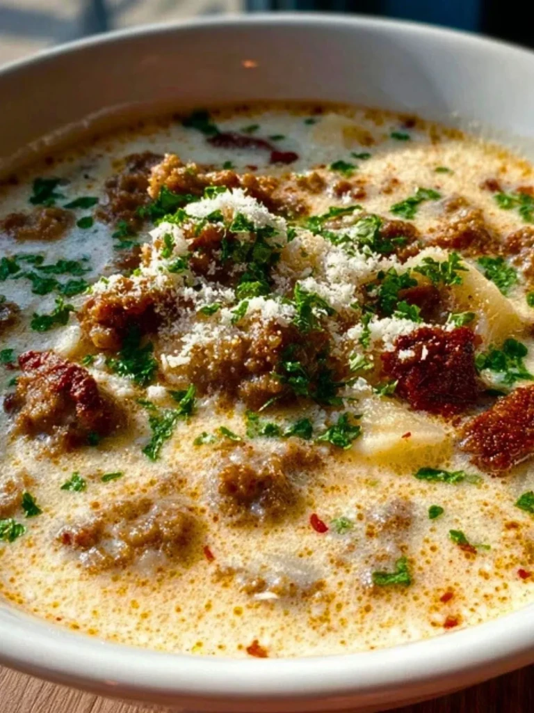 My earliest tries came out either too greasy or too bland. I hadn’t yet learned the balance — the patience needed to render the sausage just right, or the slow, steady way the cream cheese needs to melt into the broth. But once I figured it out, I realized this soup had layers I never expected. The base is creamy and lush, the sausage gives it a deep, savory hum, and the Parmesan floats like snowfall on top, sharp and salty.