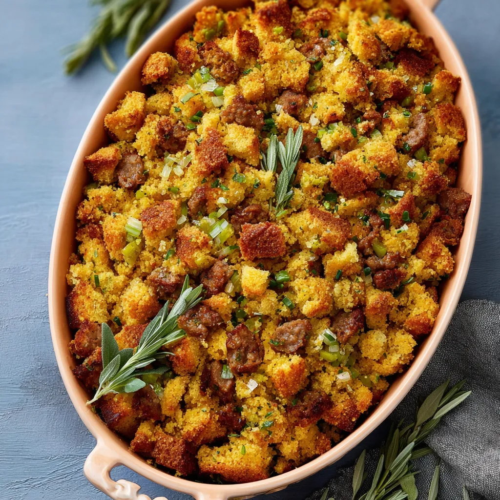 This recipe brings together the smoky essence of sausage with the cozy, crumbly texture of cornbread. It’s incredibly flavorful thanks to fresh herbs like sage and rosemary and a well-balanced base of aromatics. The top crisps up beautifully in the oven while the inside stays tender and moist. Bonus: you can prep the components ahead of time to save stress on a busy cooking day.
