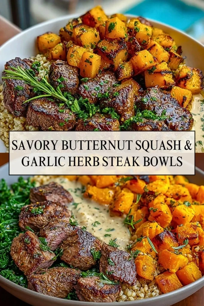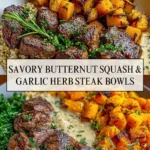 Keywords: steak bowls, garlic herb steak, butternut squash dinner, easy steak recipe, fall dinner ideas