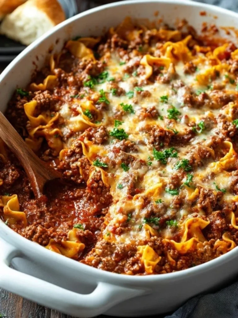 Over time, I found my rhythm. I layered the beef just right, adjusted the seasoning, and learned that a dash of Worcestershire adds something nostalgic I can’t quite name. The noodles nestle into the meat sauce now, peeking out from a cozy, golden top of melted cheese. Fresh parsley flickers like confetti across the top, and I finally feel like I’ve earned my aunt’s knowing nod.
