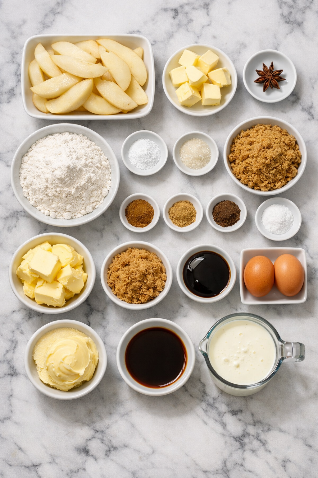 I always use firm but ripe Bosc or Anjou pears for this—something that holds its shape even after a long, slow bake. I peel them, core them, and slice them into elegant, curved segments. As they bake, they soften and absorb the spiced caramel base, turning almost jammy in texture. This is key: underbaked pears are too firm, overripe ones get mushy and disappear.